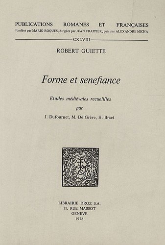 première édition 1949); La vie de Max Jacob, Paris 1976; Forme et senefiance. Acheter Forme Et Senefiance : Etudes Medievales de Robert Guiette. Toute l'